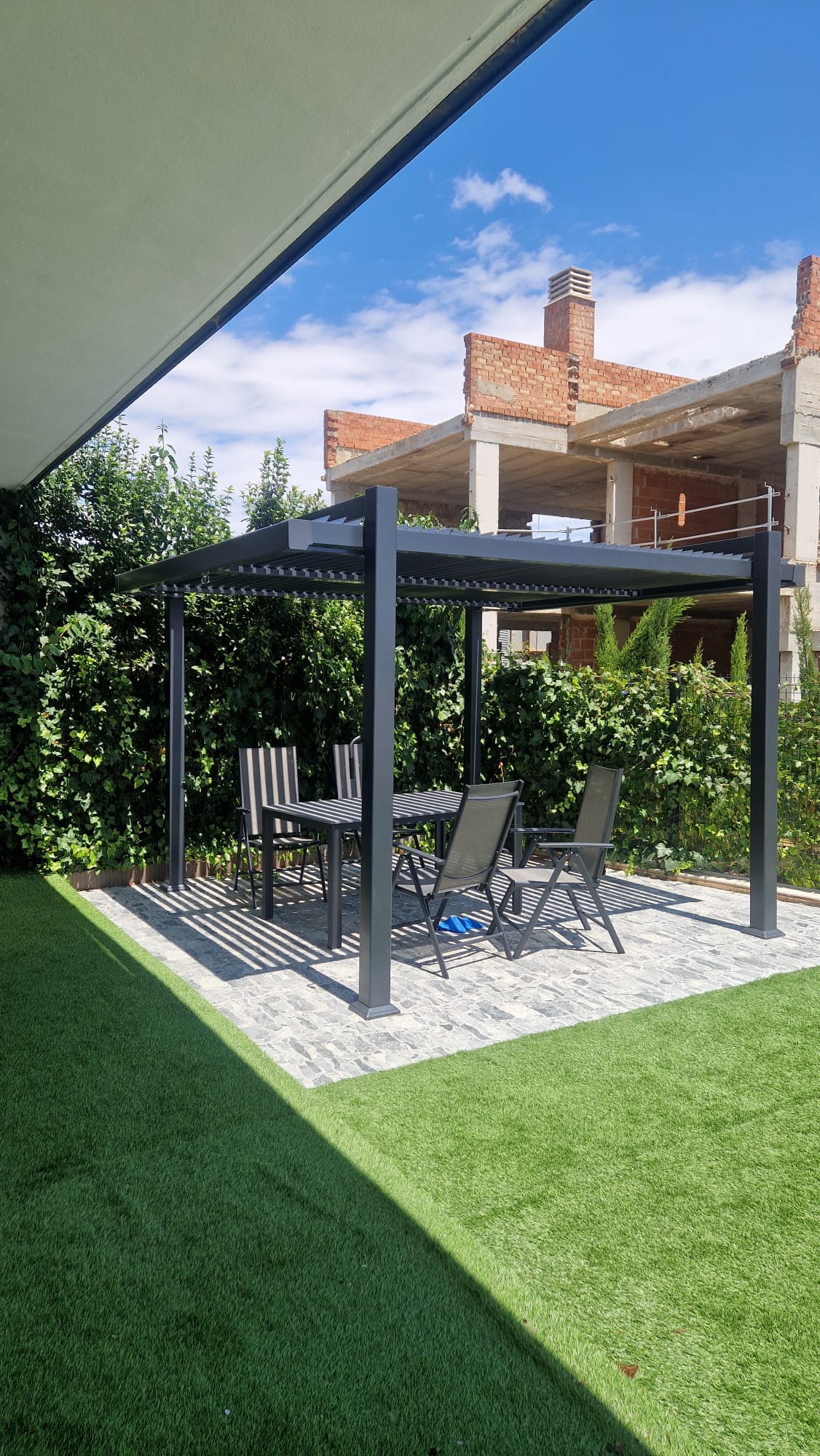 Taras wyposażony jest w meble tarasowe: stół, 6 szt. krzeseł (rozkładanych do pozycji leżaków).